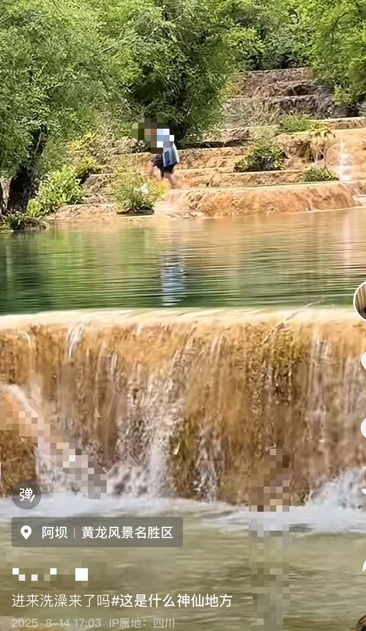 近日,有网民发布信息,称在四川阿坝黄龙风景名胜区内,有游客在池中洗澡。8月22日上午,记者致电黄龙景区,工作人员称,他们已了解有关情况,网传视频并不是游客下池洗澡,而是捡拾无人机,已对有关人员批评教育。
